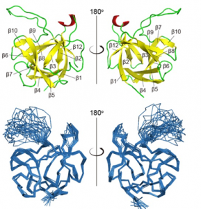 总结图1-4:我们利用核磁共振解析了肝泌素的溶液三维结构,并获得到肝泌素与受体相互作用的模型,发现肝泌素不稳定因素,成功改造获得更稳定的肝泌素,延长了肝泌素的半衰期,可以实现一周给药一次。